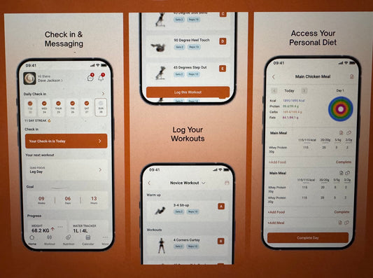 Acompanhamento Mensal com Treino, Alimentação e Suporte.